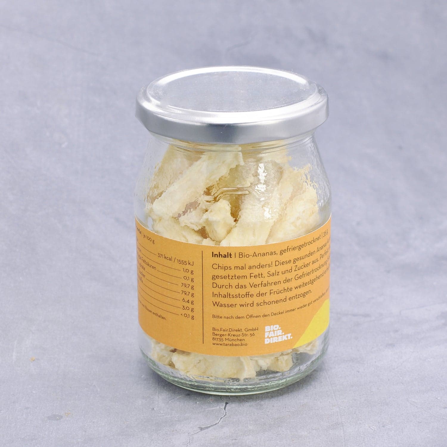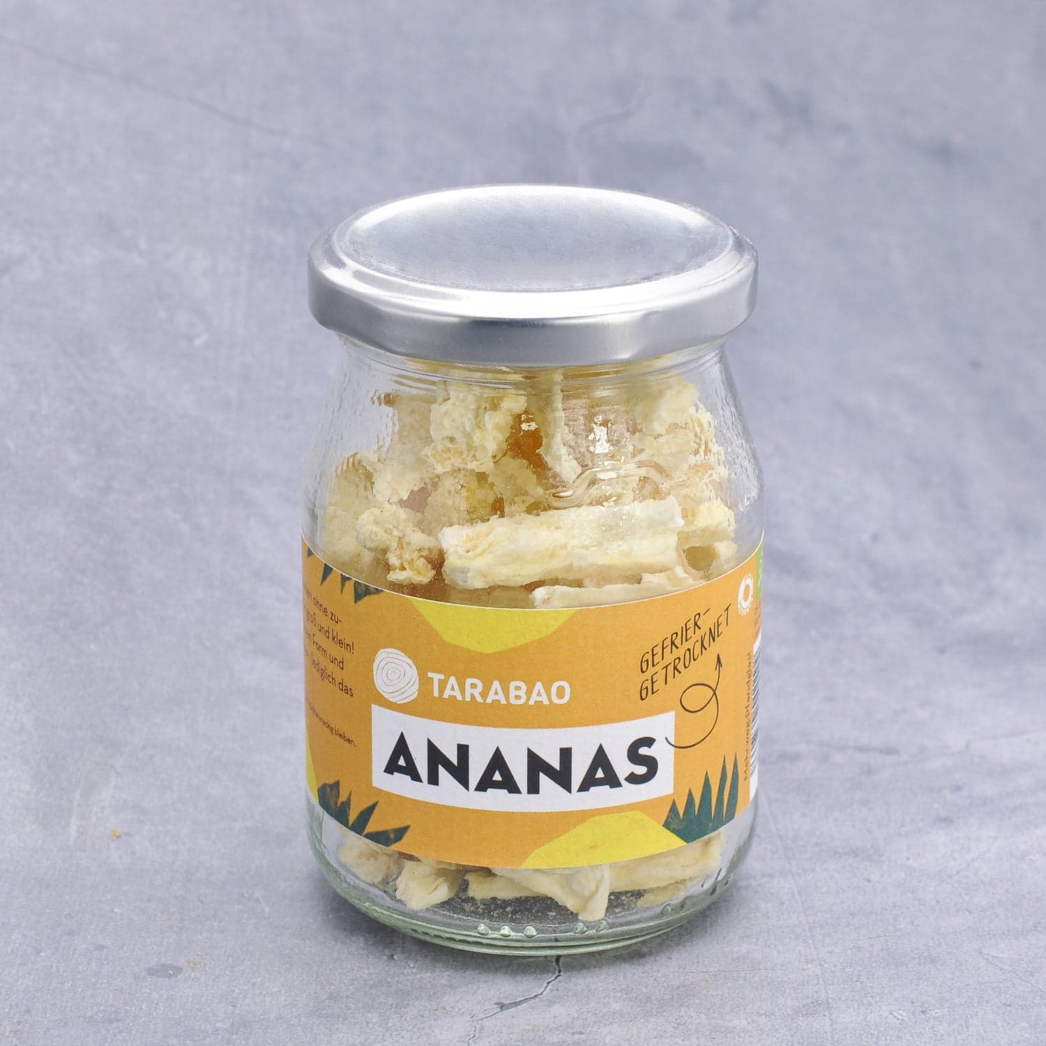 Im Vergleich zu vielen anderen Trocknungsverfahren bleiben durch die Gefriertrocknung die meisten Nährstoffe und die typische Struktur der Ananastücke erhalten. Auch die Farbe bleibt durch das Gefriertrocknen sehr intensiv.