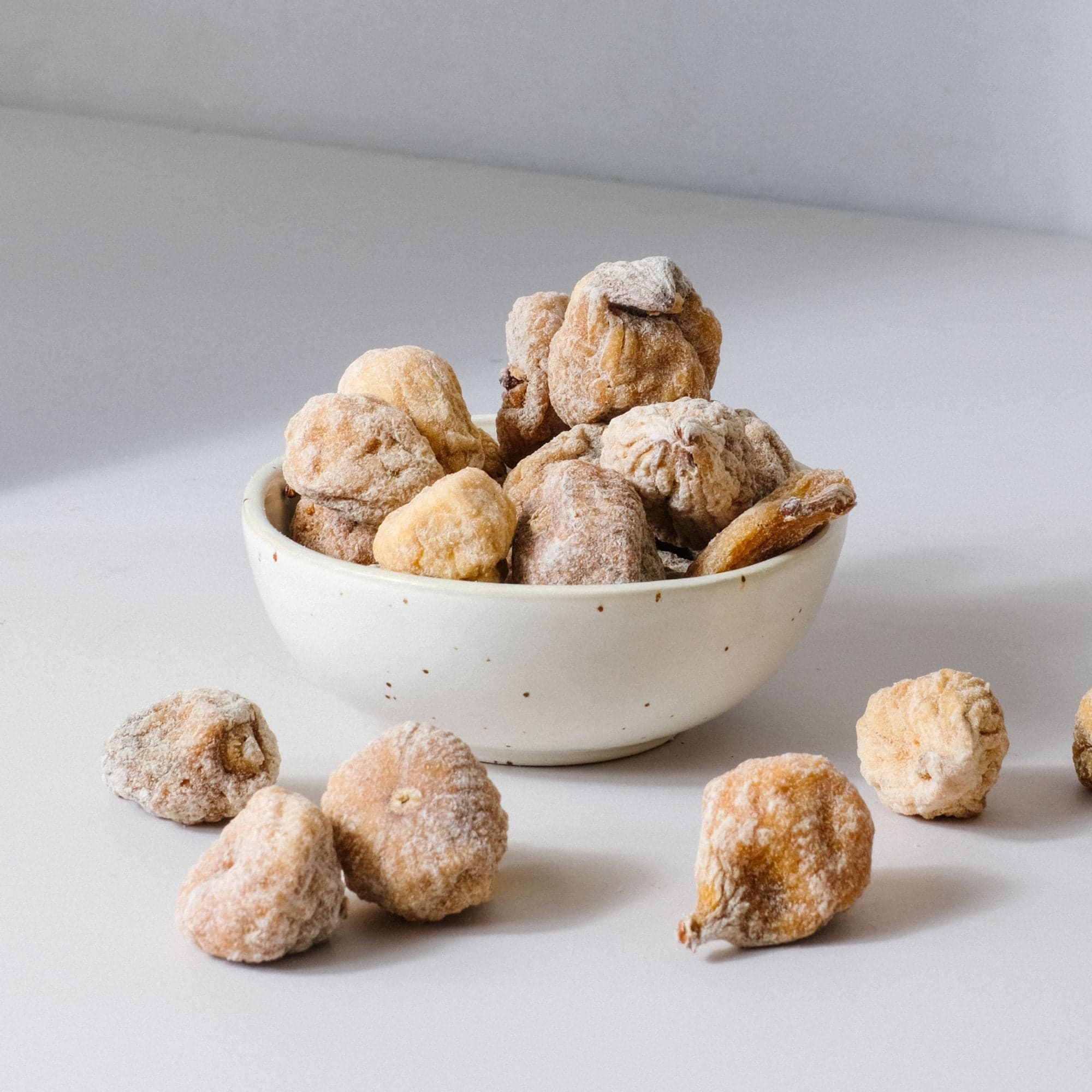 Diese kleine Frucht hat es in sich: Ihre zarte Schale umschließt ein weiches, fast cremiges Fruchtfleisch mit einer feinen, natürlichen Süße. Die Bergfeige ist ein echtes Naturprodukt – nicht zu groß, nicht zu fad, sondern genau richtig. Damit die Feigen nicht aneinanderkleben, wird sie traditionell mit etwas Reismehl bestäubt. Ein dezenter Schutz für eine Frucht, die sich ganz pur genießen lässt – ob als Snack zwischendurch oder als besondere Zutat zu Käse, Nüssen oder im Müsli.