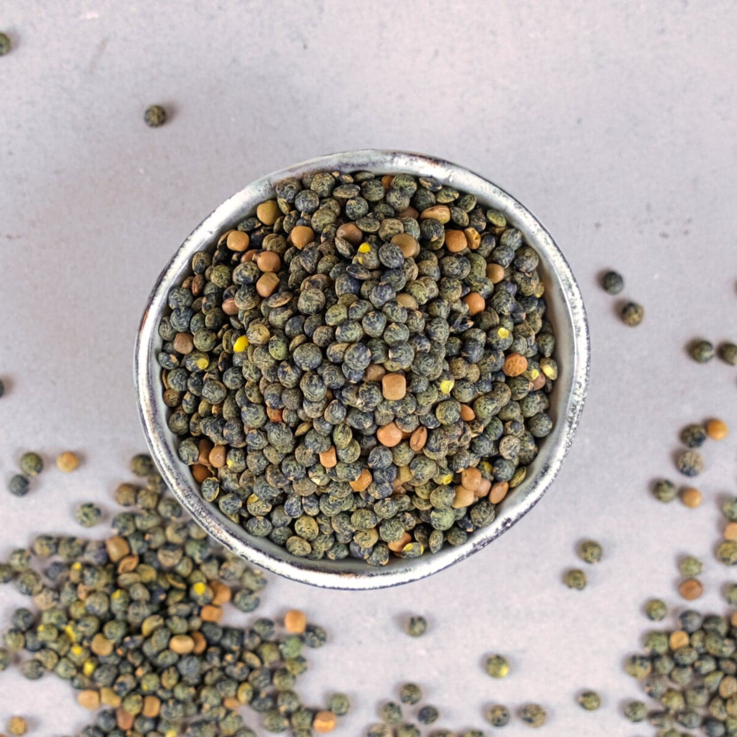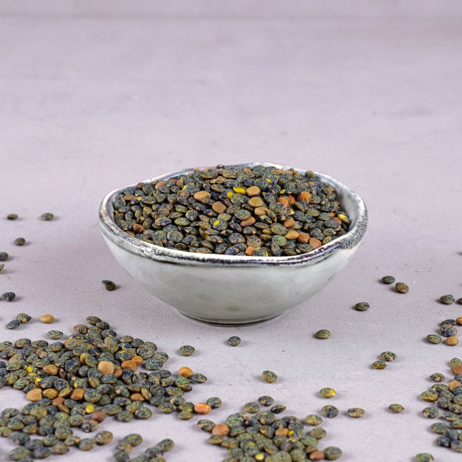 Diese Linsen sehen mit ihrer gescheckten Farbe aus wie kleine Kunstwerke. Wenig überraschend, denn sie haben ihren Ursprung im Künstler:innenland Frankreich. In der bergigen Gegend der Auvergne werden sie seit über 2.000 Jahren kultiviert. Unsere Linsen nach Art "De Puy" haben einen etwas kürzeren Transportweg, denn sie kommen aus Hessen vom Bio-Hof Schwalmtal. Sie stehen ihren Urahnen aus Le Puy-en-Velay jedoch in nichts nach: dunkelgrün marmoriert und intensiv nussig im Geschmack sind sie eine leckere Zutat für warme und kalte Gerichte. Dabei versorgen sie Dich mit wichtigen Proteinen (25-28g/100g) und Ballaststoffen (14g Ballaststoffe/100g).