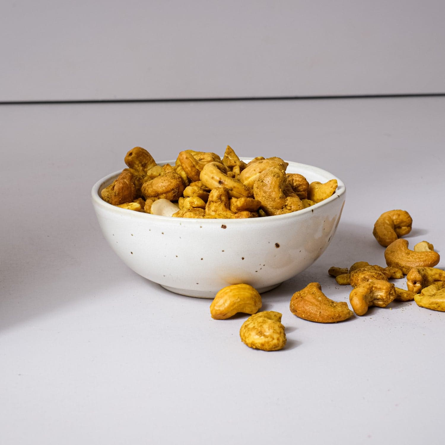 Die gewürzten Cashews sind ein super leckerer Snack für zwischendurch oder das ideale Topping auf Salaten oder indischen Gerichten.