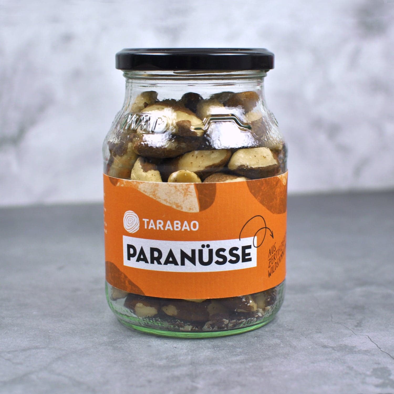 Wusstest Du, dass die Paranuss fast nur in tropischen Regenwäldern wächst und nicht auf Plantagen angebaut werden kann? Das liegt daran, dass der Paranussbaum ein natürliches Ökosystem benötigt und nur bestimmte Bienenarten die Paranussblüten, die nur einen Tag lang blühen, bestäuben können. Darum werden sie von Sammler:innen im intakten Regenwald gesammelt und tragen dazu bei, dass der Regenwald erhalten wird.
