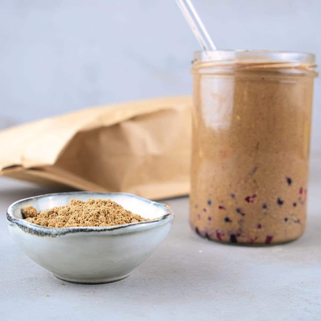 Volle Pflanzenpower für Deine sportliche Ernährung! Mit unserem veganen Proteinpulver tauchst Du in die kraftvolle Welt der pflanzlichen Eiweiße ein. Egal, ob Du Fitnessziele verfolgst oder einfach sichergehen möchtest, dass Dein Proteinbedarf gedeckt ist - dieses Proteinpulver ist eine leckere Ergänzung für Deine tägliche Ernährung. Verfeinert mit Banane und Kakao schmeckt es zum Frühstück genauso wie vor oder nach dem Sport als stärkender Drink.