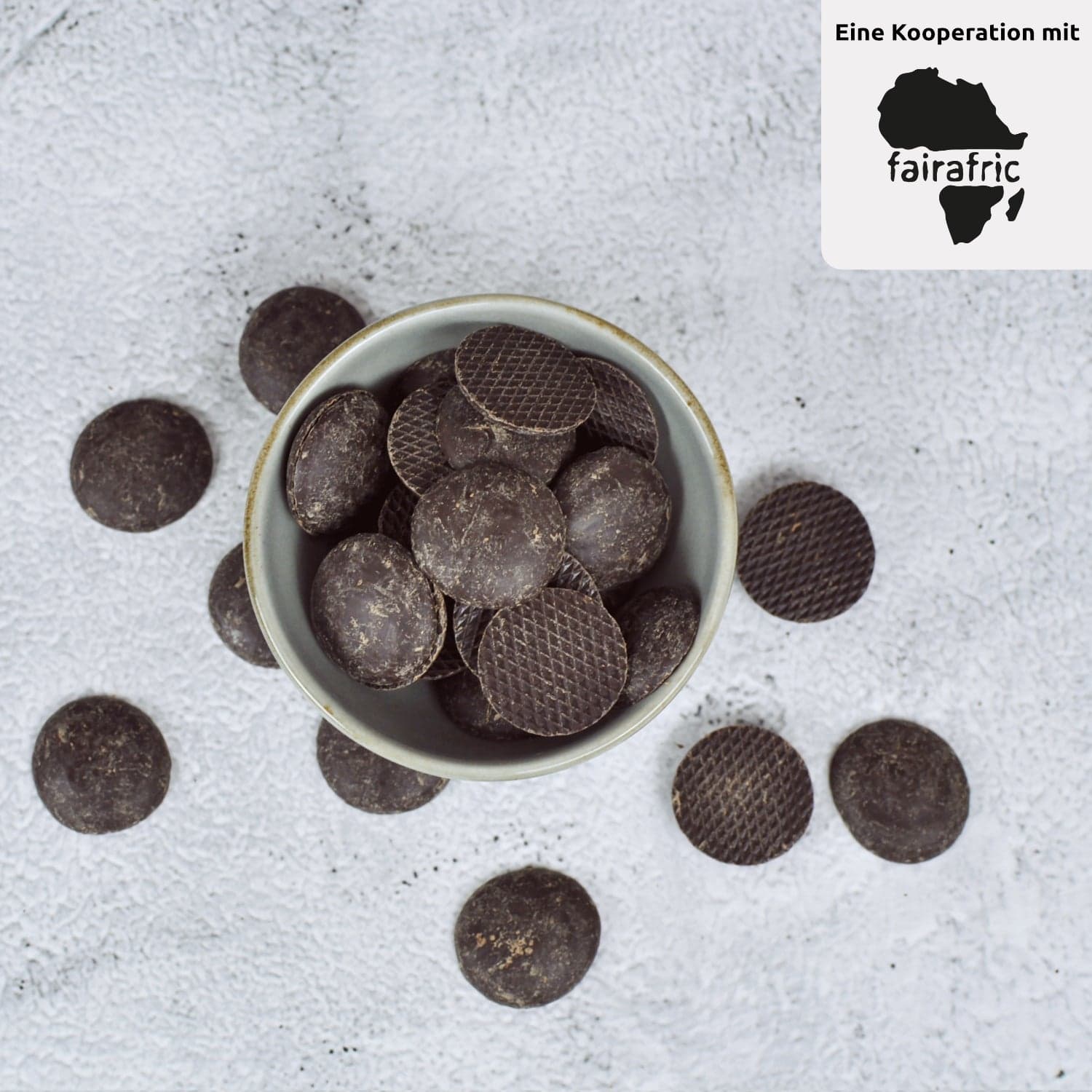 Faire Schokoladendrops? Echte Multi-Talente! Durch ihre geringe Größe kann man sie sehr einfach einschmelzen, zum Beispiel fürTortenguss oder Schokoladenfondue. Aber auch als Dekoration für Kekse und Plätzchen eignen sich die geschmolzenen Drops wunderbar. Unser Partner fairafric nutzt nur hochwertige Rohstoffe und die Drops sind frei von jeglichen Zusätzen wie Lecithin oder Aroma- und Konservierungsstoffen. Sie sind perfekt für Liebhaber:innen von veganer Schokolade und haben einen Kakaoanteil von 70%.