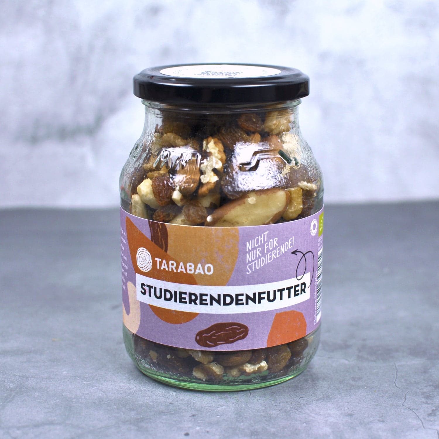 Das hier ist kein typisches Studentenfutter! Unser leckeres Studi-Futter schmeckt nämlich super frisch und knackig und ist natürlich in bester Bio-Qualität! Unser leckeres Studentenfutter der besonderen Art nennen wir Studierendenfutter und es stecken nur die besten Zutaten darin. Das kannst Du wirklich schmecken.